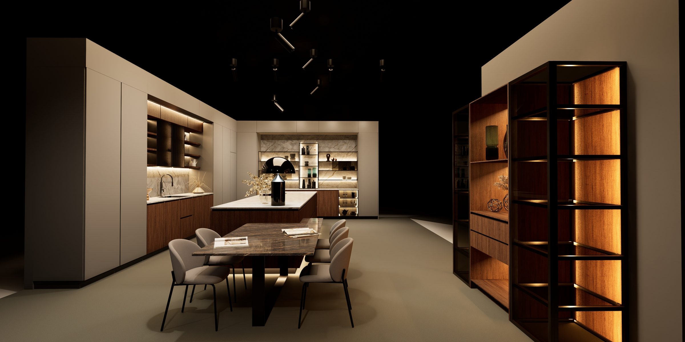 Diseño 3D de stand para empresa de mobiliario Franco Furniture. Renders.